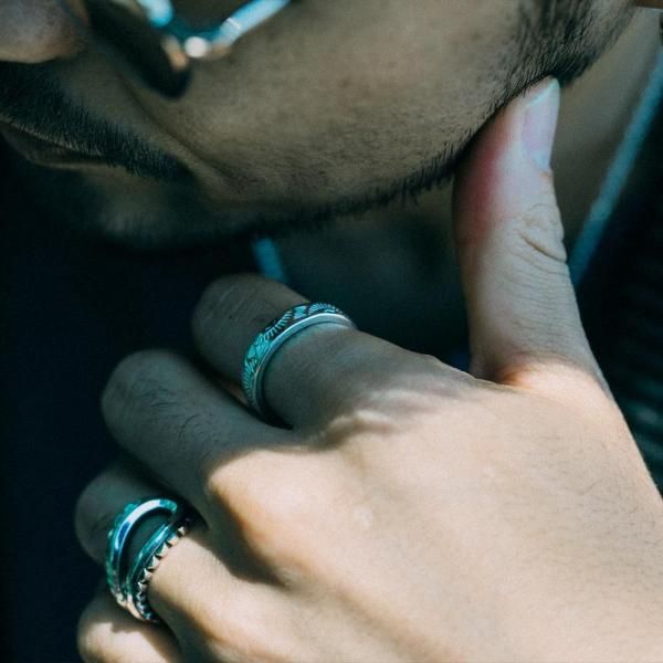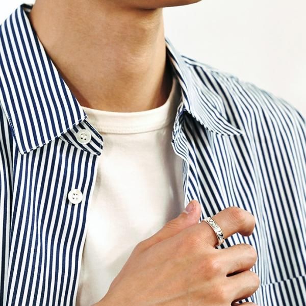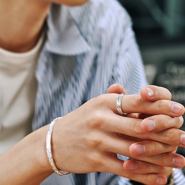 模様の凹凸から生まれるシルバーの輝きが美しいリング。