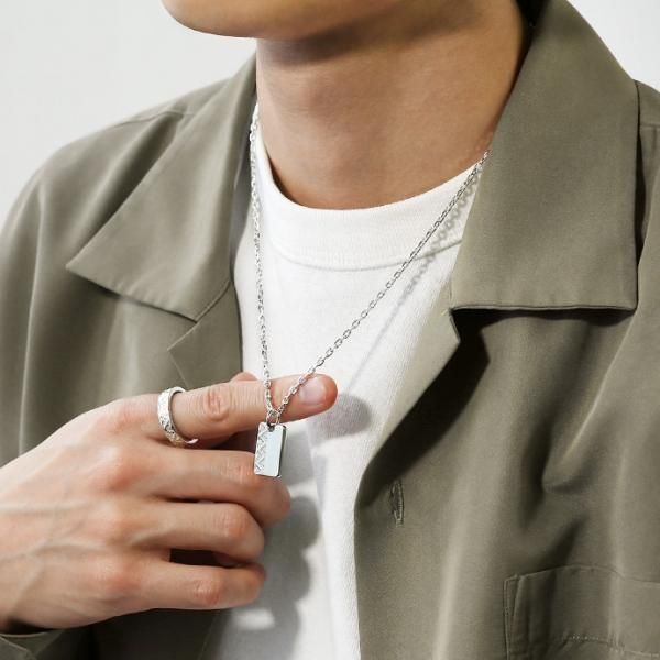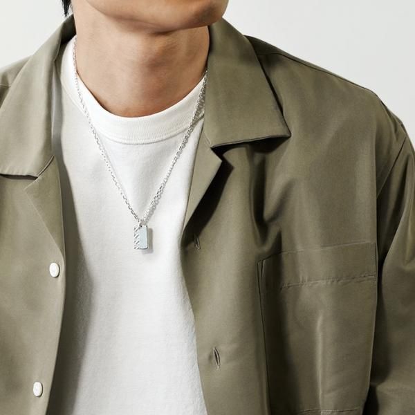 プレート型のボディに入れられた模様と、そこから生まれるシルバーの輝きがアクセントのペンダント。