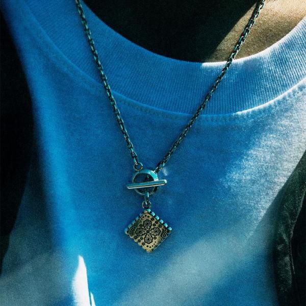 そのモチーフであるペイズリーや草花を緻密に彫刻したペンダントネックレスです。