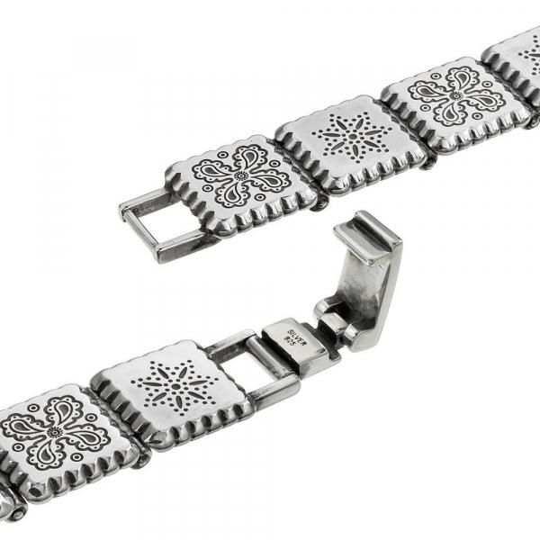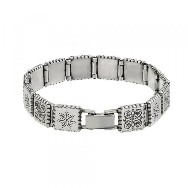ペイズリー柄をデザインしたプレートを繋げた、バンダナをイメージしたブレスレット。