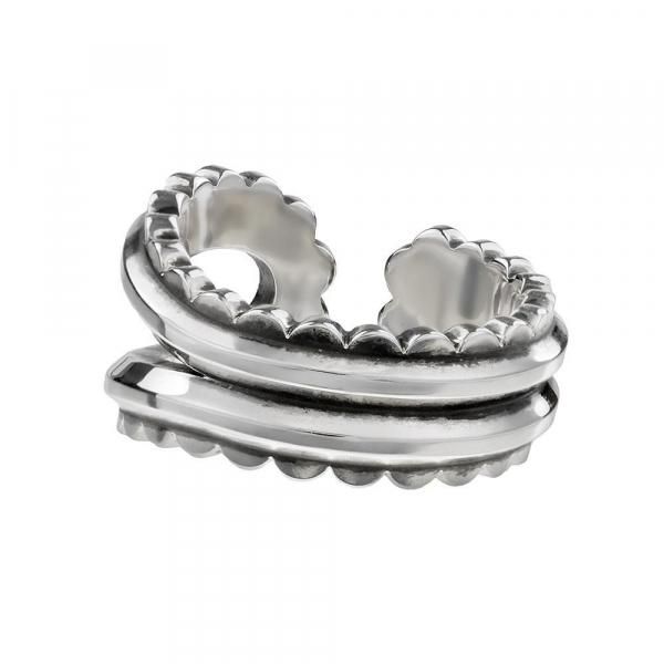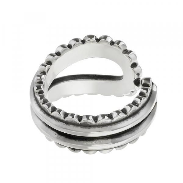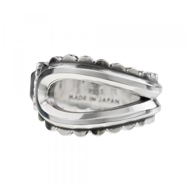 ペイズリーの象徴とも言える“勾玉型”を、立体的かつ大胆に再構築したリング。