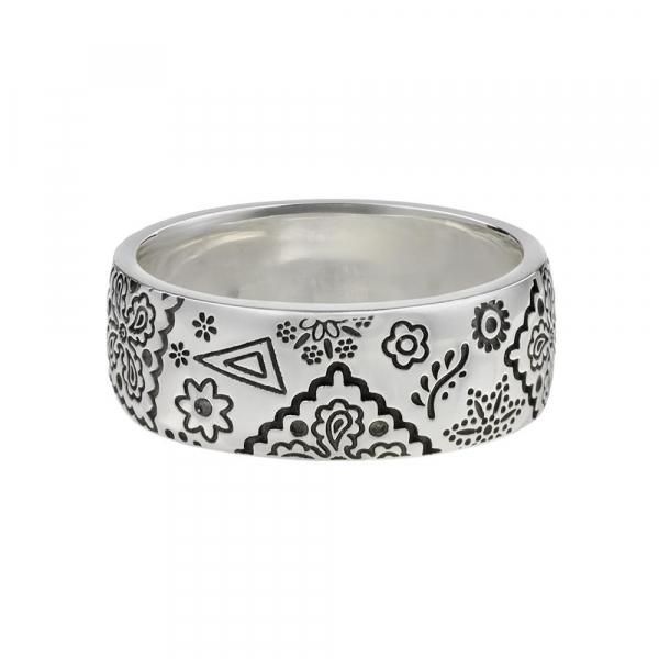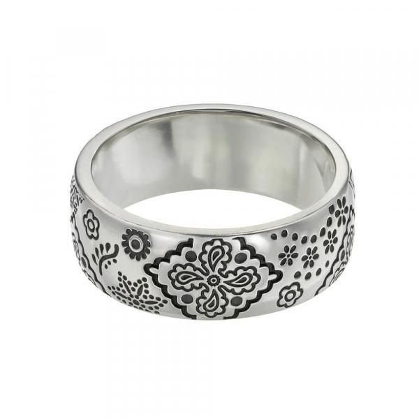 全体にペイズリー模様を散りばめた、遊び心と存在感のある甲丸リング。